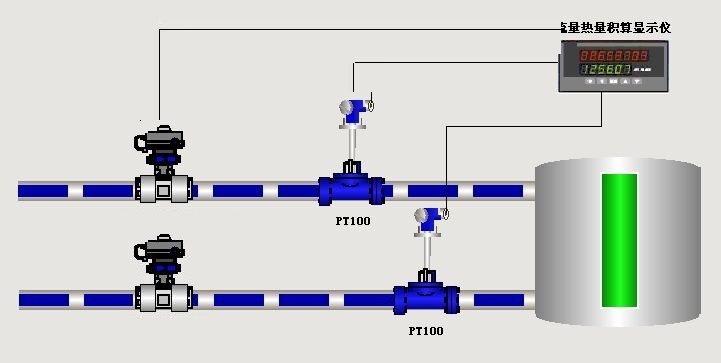 1、可接受脉冲类流量传感器输出的频率信号(如涡街流量传感器)、差压类变送器输出的4-20mA差压电流信号(如孔板,V锥流量传感器)或各类流量变送器输出的4-20mA体积流量电流信号(如液体超声波91香蕉污在线观看,电磁91香蕉污在线观看,气体涡轮91香蕉污在线观看,转子91香蕉污在线观看等)。两支Pt100铂热电阻分别检测热水和冷水的温度,两台压力变送器分别检测热水和冷水的压力,热量积算仪采集信号,进行热量计算、显示、存储及发送。